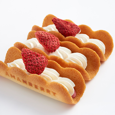 さっくりと焼き上げた薄焼きチュイールに、ミルククリームとあまおう苺をのせた、
