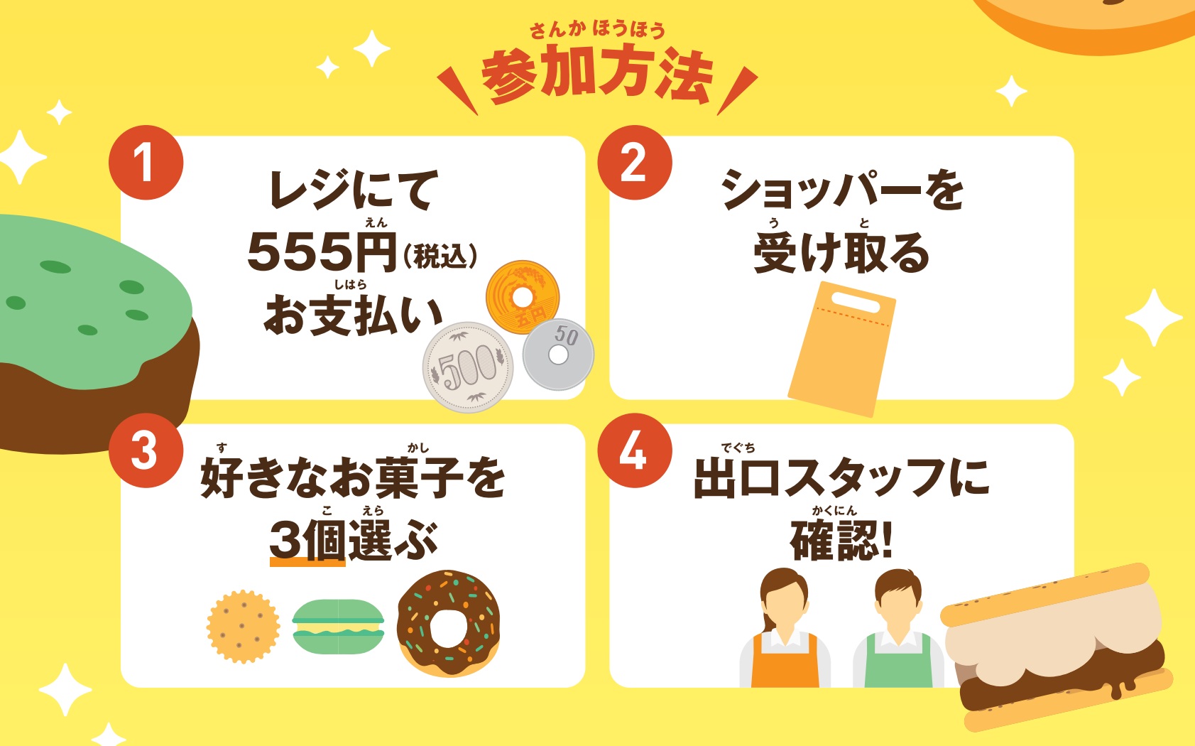 お好きなお菓子3つで555円(税込)の特別イベント!