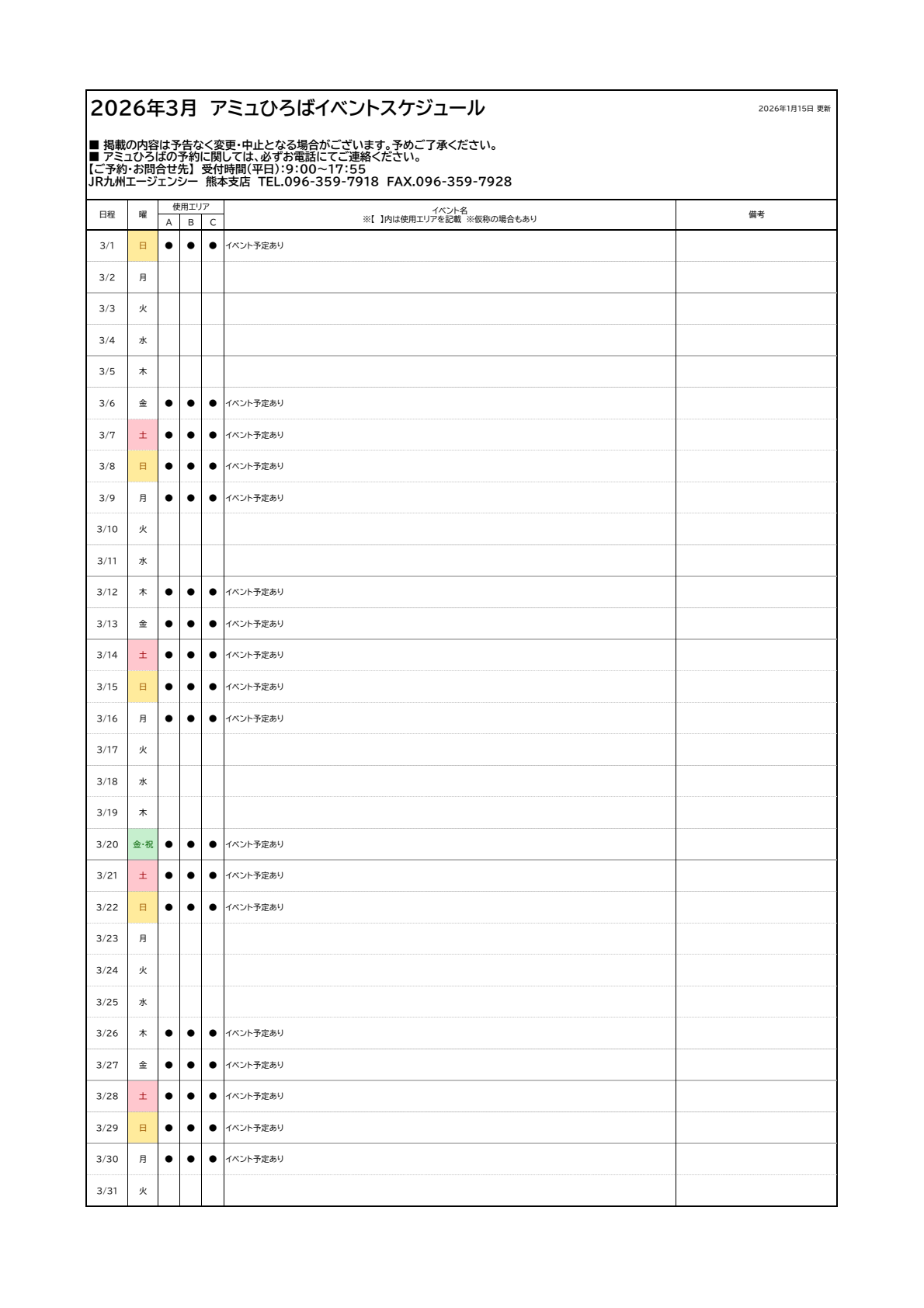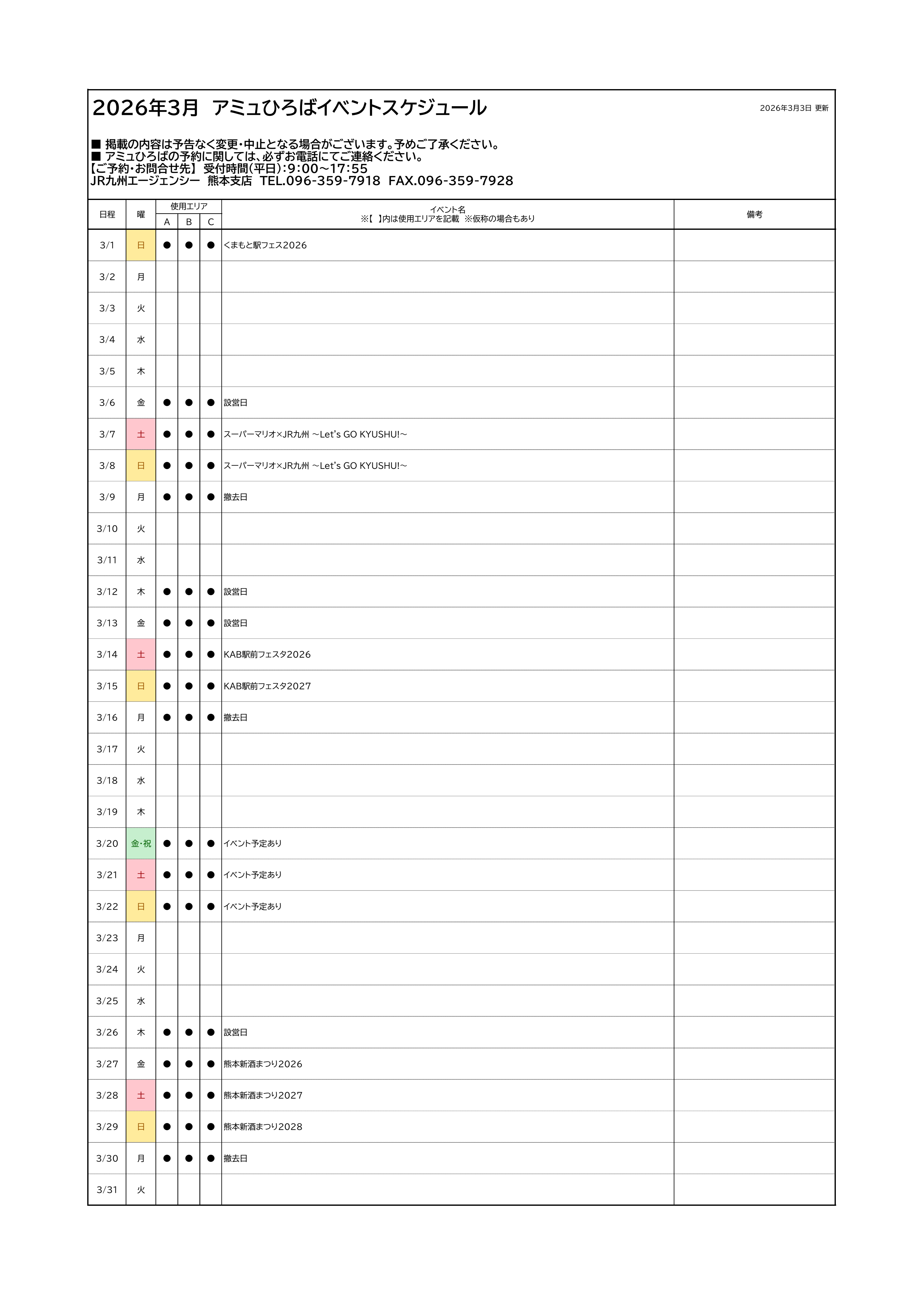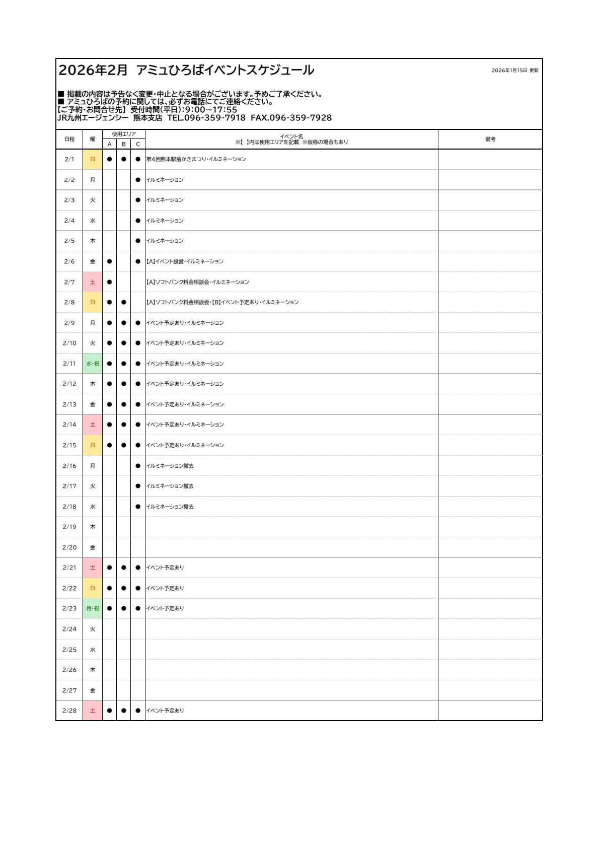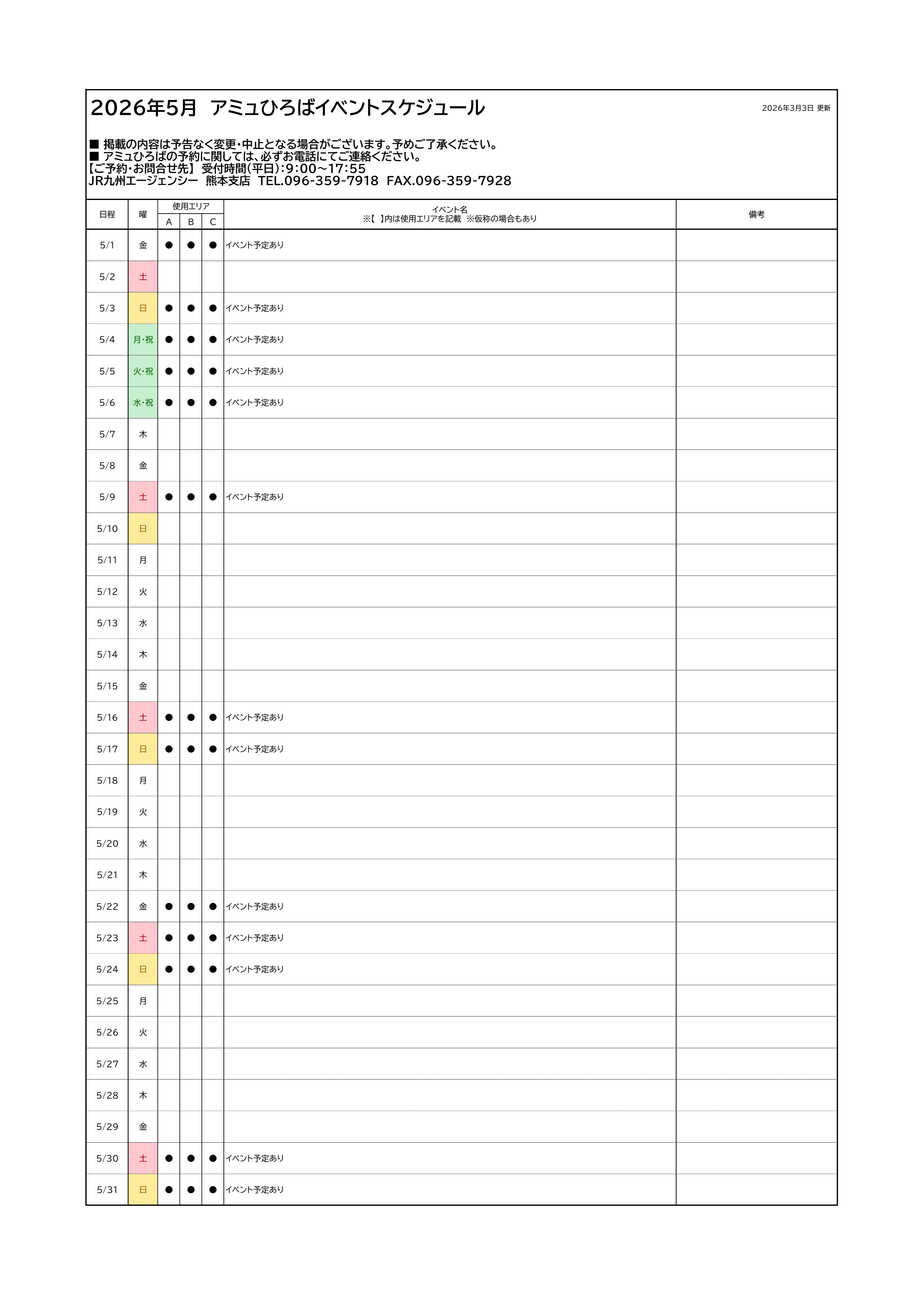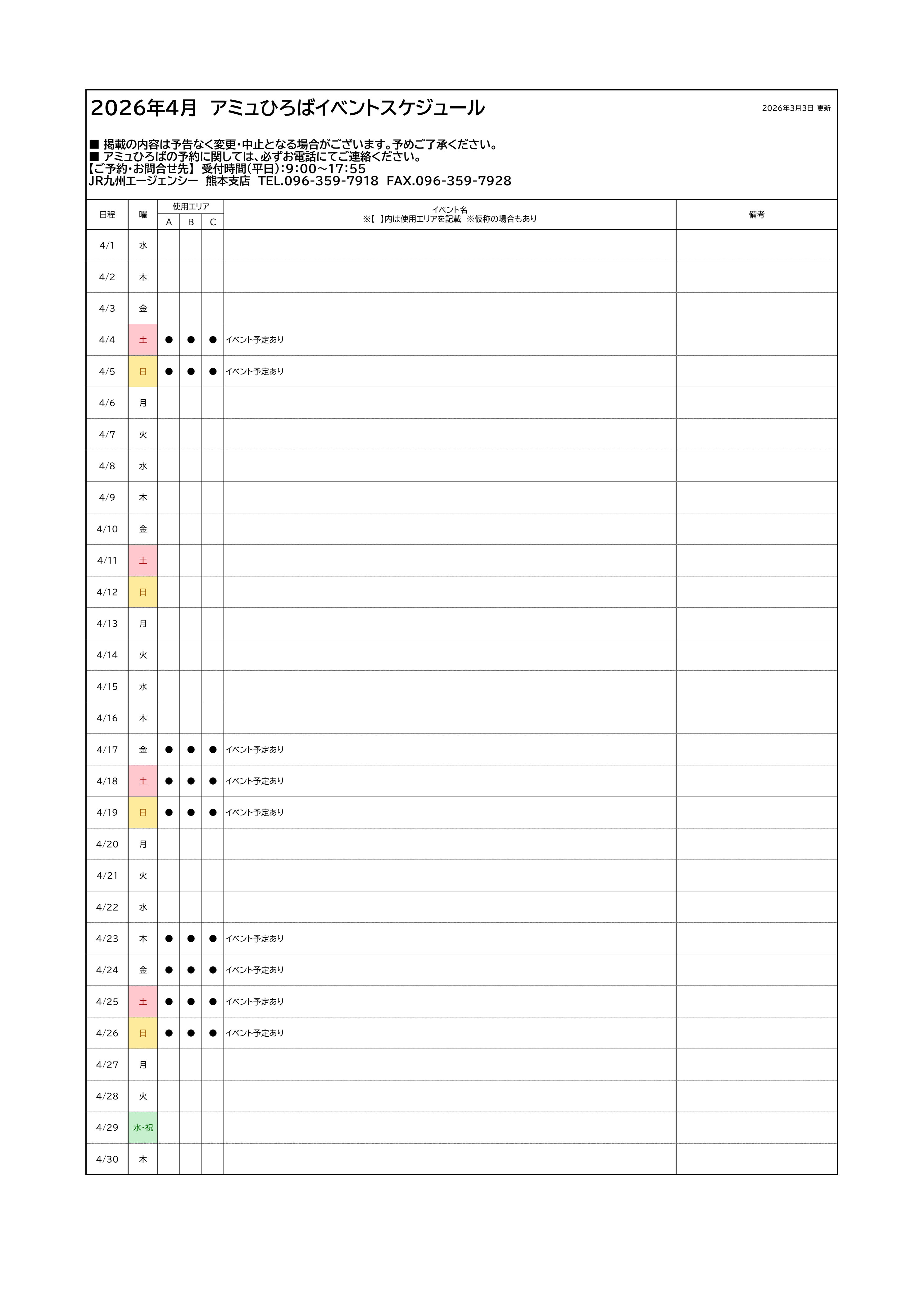 アミュひろばイベントスケジュール